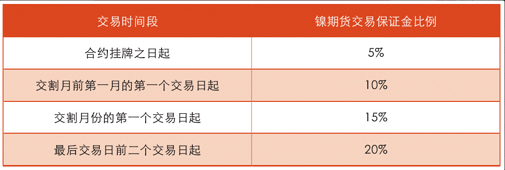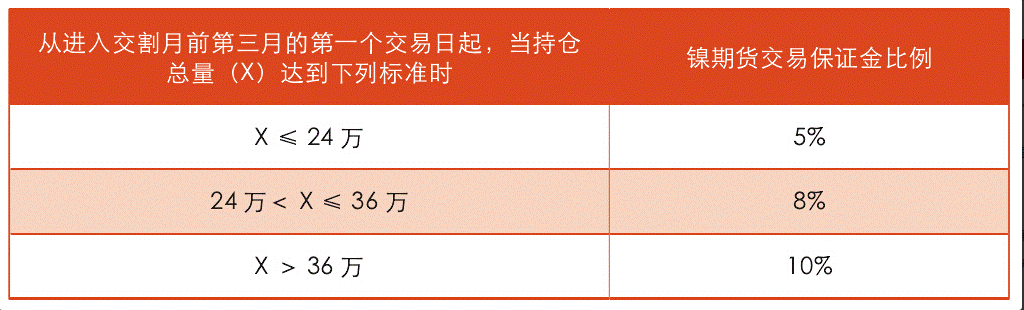镍期货合约相联三个贸易日的累计涨跌幅抵达10%;或相联四个贸易日的累计涨跌幅抵达120;或相联五个贸易日的累计涨跌幅抵达14%时,贸易所可能按照商场情状,选用单边或双边、同比例或差别比例、局限会员或全数会员降低贸易保障金,局部局限会员或全数会员出金,暂停局限会员或全数会员开新仓,调动涨跌停板幅度,限日平仓,强行平仓等要领中的一种或众种要领,但调动后的涨跌停板幅度不进步20%。