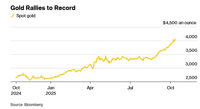 黄金狂飙超50%登顶4000美元!央行、ETF与散户三途资金推高这场“史诗级牛市”
