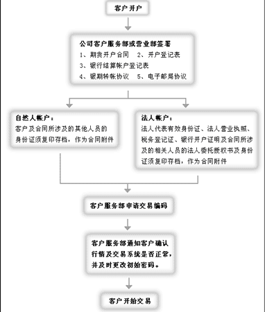 带自己身份证和银行卡到期货公司照料开户手续,此中银行卡必要中、农、工、修、交、中信、光大、浦发行的借记卡,具有信用卡效力的银行卡不行照料开户。整个开户流程如下: