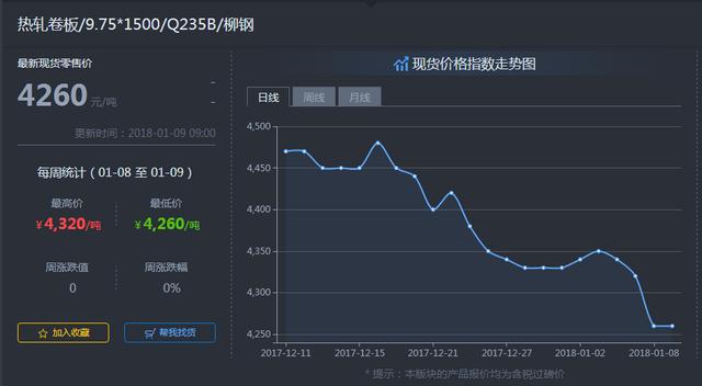 环比上涨约4.2万吨/日-石油期货价格走势图钢铁天下园区的热卷代价从1月3日滥觞持续下跌,至今累计跌幅90元,昨日热卷现货降幅较大。今日钢铁天下园区热卷的报价为4260元/吨,与前一天持平。