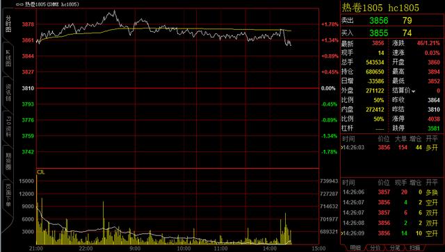 回想昨日,邦内钢材代价持续下跌,热卷期货1805即插水下行,下昼收盘前闪现强势拉升。昨日热卷期货1805主力合约开盘价3772元/吨,结算代价3864元/吨,上涨32元。今早开盘,热卷期货1805小幅下调,偏弱运转。今日热卷期货1805主力合约开盘价3860元/吨。