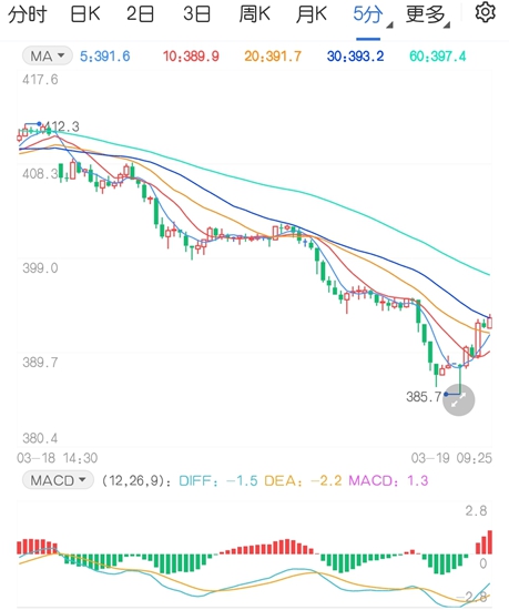 3月19日,邦内商品期货大批飘绿,燃油、原油主力合约跌幅靠前,其华夏油主力跌超5%。截至收盘,原油主力跌5.70%,报389.1元。